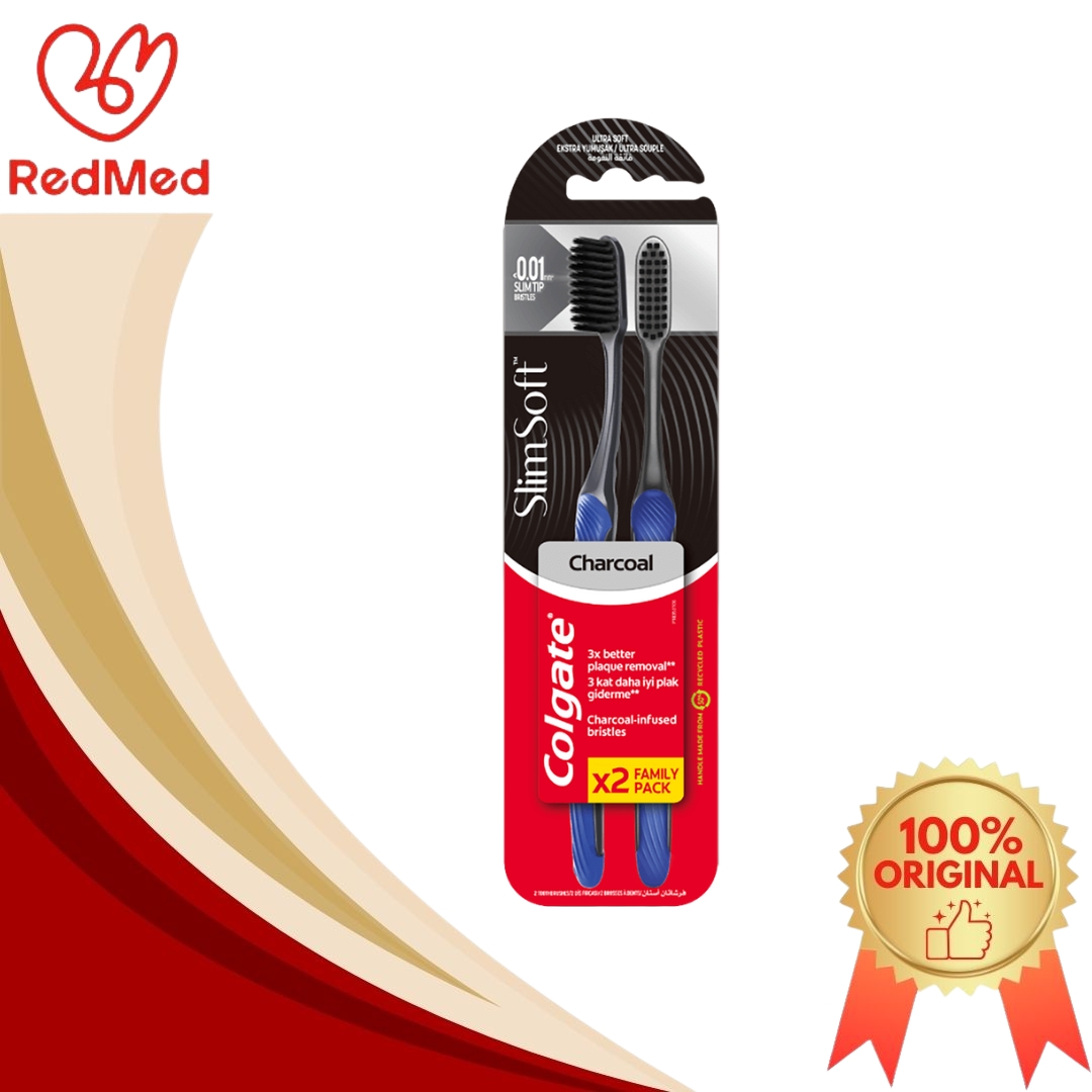 COLGATE TOOTHBRUSH SLIMSOFT CHARCOAL 2PK