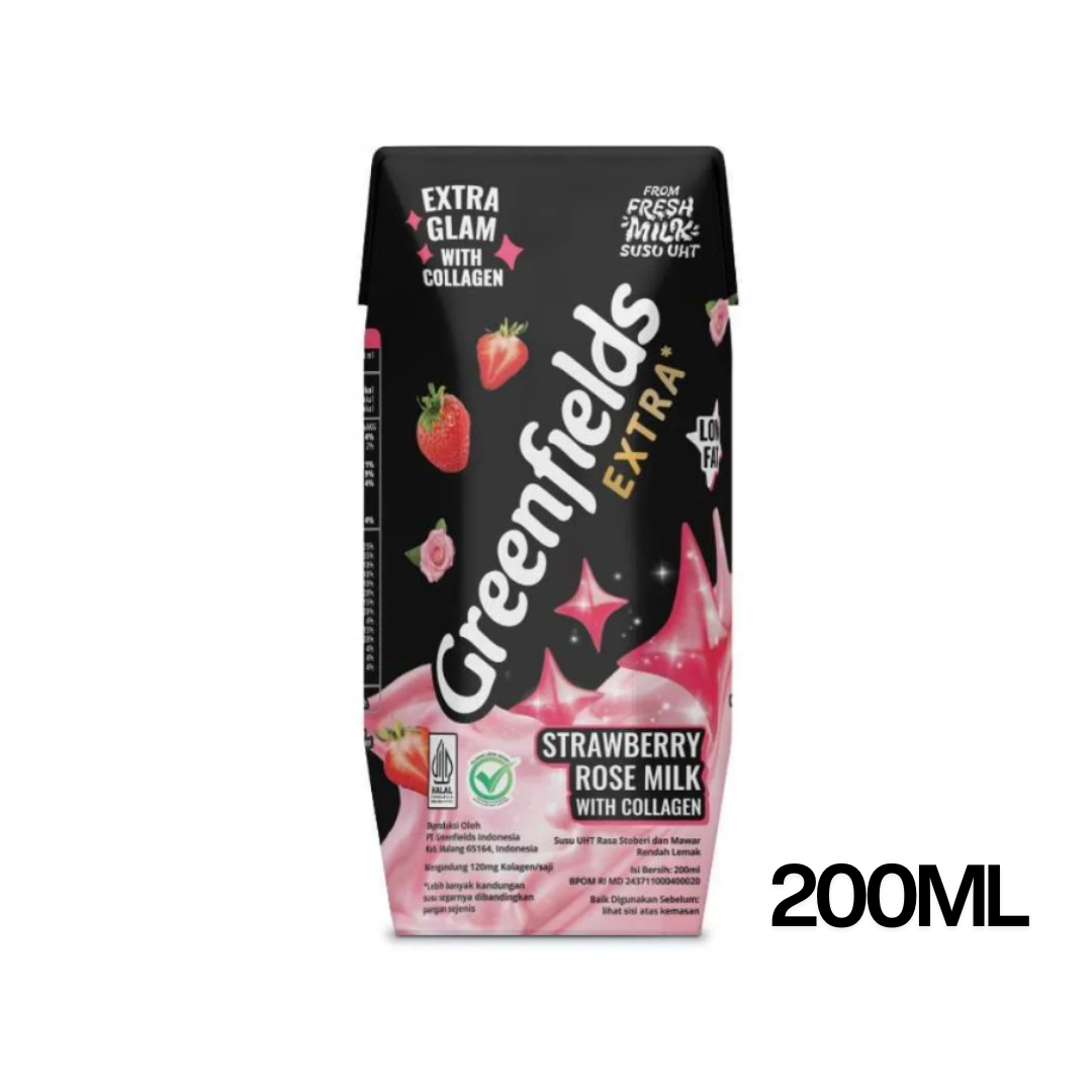 GREENFIELDS EXTRA STRAWBERRY ROSE MILK WITH COLLAGEN 200ML