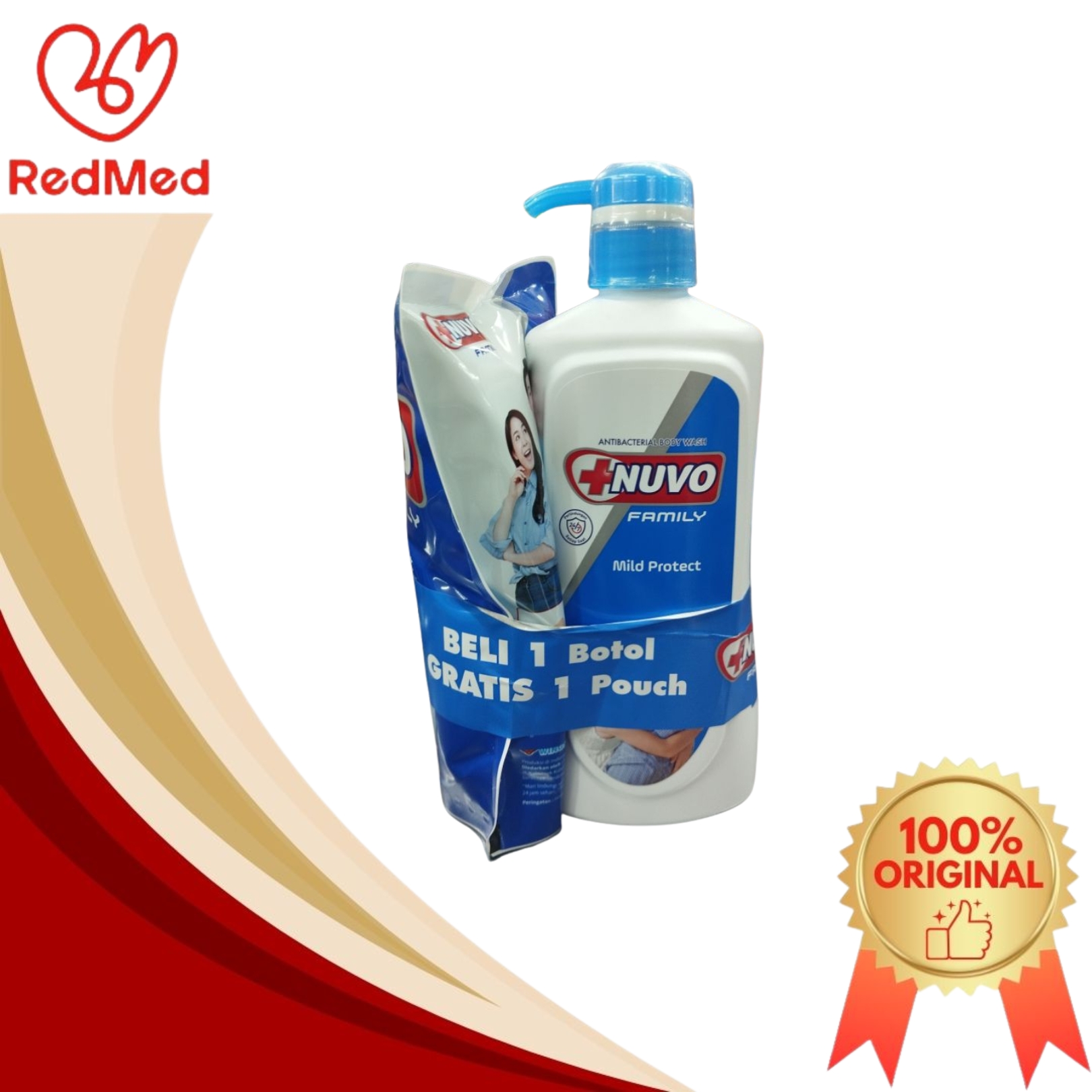 NUVO ANTIBACTERIAL BODY WASH MILD PROTECT BANDED (BIRU) 550ML